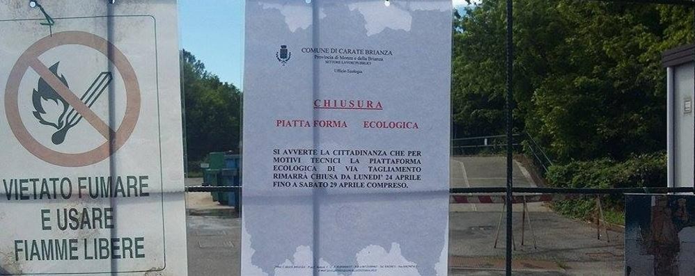La piattaforma ecologica di Carate Brianza è una bomba a orologeria. Venerdì il sindaco Francesco Paoletti ha firmato la revoca dell’ordinanza che, fino al prossimo 30 giugno, consentiva il conferimento dei rifiuti alla piattaforma ecologica di via Tagliamento.