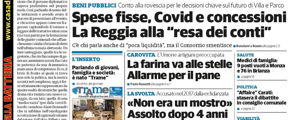 La Villa Reale tra il post-Covid e le sfide per il futuro in primo piano sul Cittadino di giovedì 28 ottobre 2021, che arriva in edicola con una novità: il nuovo inserto mensile “Trame” per parlare di giovani, famiglia e società.