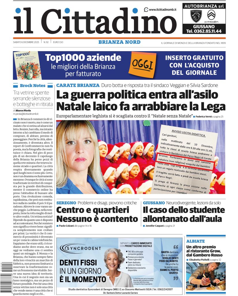 Cosa c’è sul Cittadino di sabato 6 dicembre 2025 nelle quattro edizioni della Brianza. Nelle edicole e in edizione digitale (clicca qui).