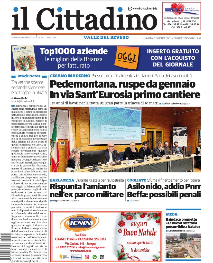 Cosa c’è sul Cittadino in edicola sabato 6 dicembre 2025: Brianza Nord