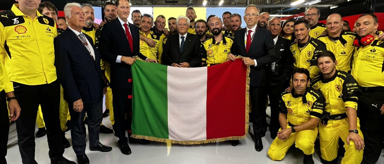 Accolto dal presidente di ACI, Mattarella ha percorso il viale dei paddock, scortato dai corazzieri (già presenti dalle prime ore della mattina) si è fermato davanti all’hospitality di F1, quindi accompagnato da Stefano Domenicali, ex team principal della Ferrari e ora CEO di Liberty Media che gestisce la Formula 1 e John Elkann, presidente Ferrari, è entrato nei box Ferrari.