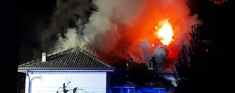Fiamme altissime sul tetto domate dai vigili del fuoco