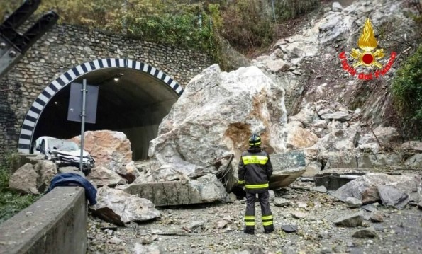 Sono usciti miracolosamente illesi dal finestrino il conducente e il passeggero di un furgone – due fruttivendoli di Introbio, zio e nipote – travolto nel primo pomeriggio di venerdì 9 dicembre da un grosso masso piovuto insieme ad altri più piccoli da un costone del Pizzo d’Erna, nel lecchese sulla carreggiata della nuova Lecco-Ballabio, diramazione della superstrada Statale 36 che porta in Valsassina. La frana ha completamente invaso l’ingresso della galleria Giulia, all’altezza di Versasio. Sul posto si sono portati i vigili del fuoco e personale inviato dal 118 che ha portato precauzionalmente i due coinvolti al pronto soccorso dell’ospedale Manzoni di Lecco. La circolazione lungo la direttrice è stata interrotta in entrambi i sensi di marcia.