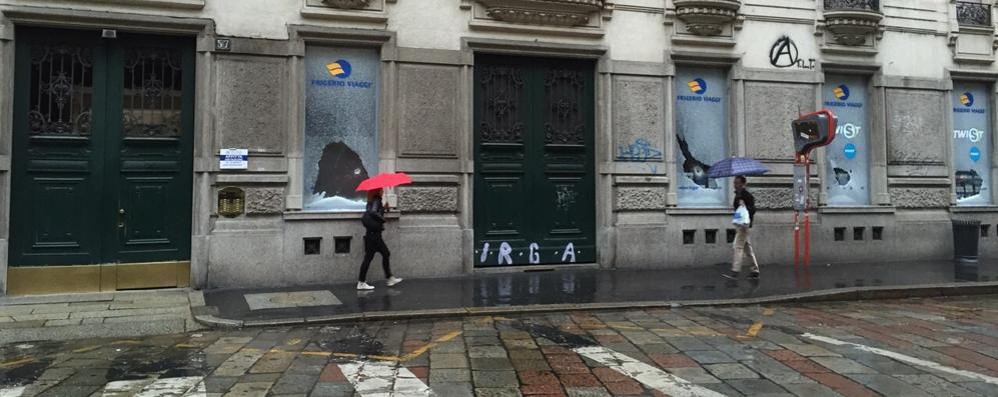 I danni del corteo No Expo agli uffici di Milano della Frigerio Viaggi di Giussano Federica Verno
