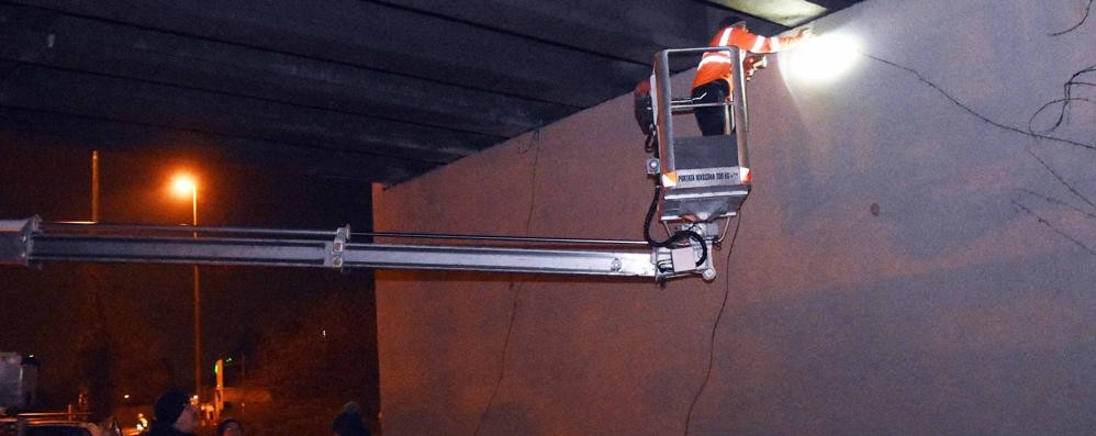Un’operazione che consentirà a breve di riaprire il cavalcavia ai mezzi fino alle 35 tonnellate di peso.