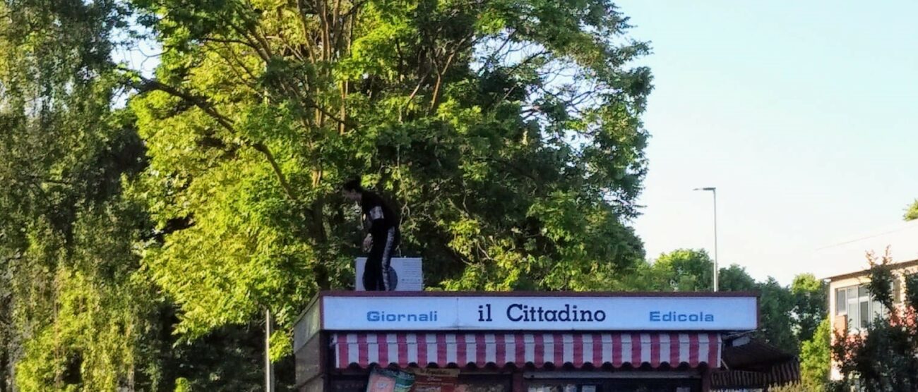 La vivacità dei ragazzi che si ritrovano attorno al parchetto di via Fiume non si smentisce mai, e in un pomeriggio della scorsa settimana si è superata i in comportamenti pericolosi. Sotto gli occhi allibiti e preoccupati di tanti passanti. Un gruppetto di giovani residenti della zona della Posta ha preso di mira il chiosco dell’edicola, decidendo di issare uno di loro sul tetto per una breve passeggiata pericolosissima.