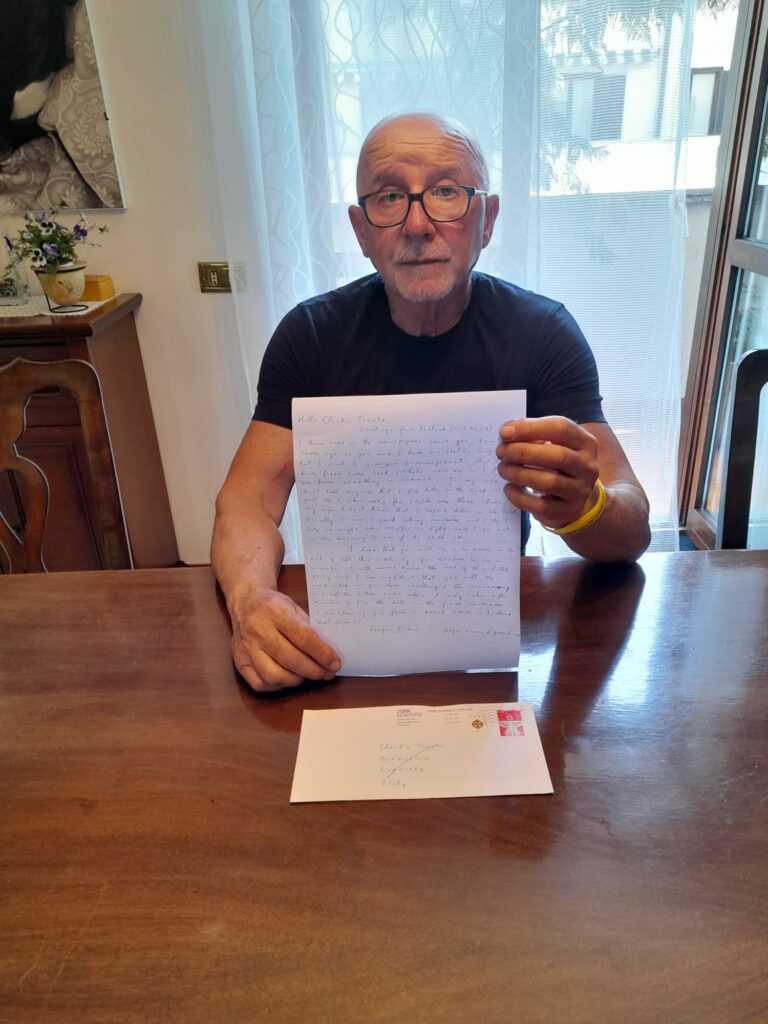 Si chiama Fergus Owens ed anche lui, nella sua cittadina, si occupa di piccoli lavori di manutenzione; coetaneo del barlassinese, si è rivisto nella storia leggendola sui giornali in patria e per solidarietà ha voluto scrivere a Trenta. «Ho letto di te sul giornale, ho la tua stessa età e non parlo italiano, tuttavia voglio darti il mio incoraggiamento», scrive nella missiva.