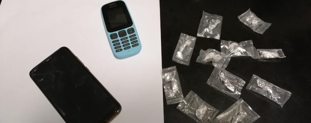 La perquisizione ha permesso di scoprire nel cappotto dodici dosi di cocaina confenzionate in carta stagnola e oltre 500 euro nel portafogli, di cui non ha saputo spiegare la provenienza e quindi ritenute provento dell’attività di spaccio.