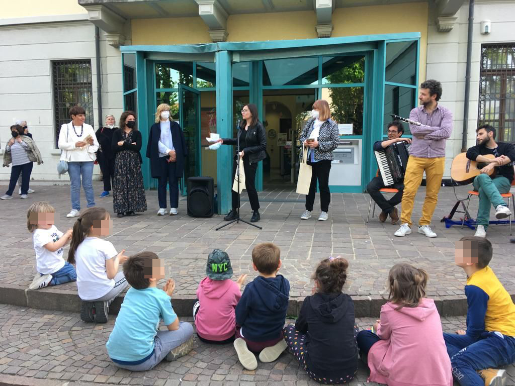 Pubblico numeroso di ogni età ha fatto tappa in piazza IV novembre per assistere alle due proposte. Il compleanno della biblioteca civica di Lissone prosegue sabato 30 aprile: alle 10.30, spettacolo di animazione teatrale-musicale basato sull’improvvisazione con musica dal vivo “Alla tavola del Cappellaio Matto” e, alle 16, incontro alla scoperta del fumetto tra storia, letteratura e cinema “Bang! Crash! Gulp!”.