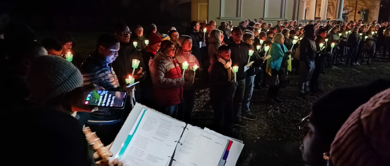 Il corteo ha percorso via Lecco fino al confine con il Comune di Villasanta e verso la parrocchia Santa Anastasia. Per quattro volte i partecipanti si sono fermati per ricordare altrettante guerre ancora aperte e che stanno incendiando, in questi anni, quattro continenti. In chiesa, dove è stato allestito uno schermo ai piedi dell’altare, sono riecheggiate le parole del presidente della Repubblica, Sergio Mattarella, pronunciate in occasione dell’ultimo discorso di fine anno e poi ancora papa Francesco che descrive una terza guerra mondiale a pezzi che sta dilaniando il mondo e le parole di San Giovanni Paolo II quando durante un Angelus auspicò mai più guerra per l’umanità. Alla fiaccolata erano presenti i sindaci dei tre comuni del decanato: Paolo Pilotto, sindaco di Monza, Luca Ornago, di Villasanta e Marco Troiano, sindaco di Brugherio. In marcia anche il vicario generale della diocesi di Milano, monsignor Franco Agnesi.