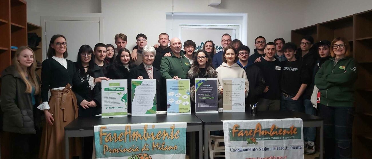 La sede monzese di “Fare Ambiente“, il Movimento Ecologista Europeo del professor Vincenzo Pepe venerdì mattina ha aperto le sue porte ai ragazzi e agli insegnanti dell’Istituto “Enzo Ferrari” di Monza, in occasione della premiazione del bando studenti nel quale i ragazzi erano chiamati a mettere a punto un manifesto in tutela dell’eco sistema con gli occhi e con la fantasia di chi studia grafica tutti i giorni. Presenti alla mattinata con Lele Petrucci e gli altri animatori del gruppo, sono intervenuti due consiglieri regionali, Chiara Valcepina e Riccardo Pase quest’ultimo vice presidente della comissione Ecologia a Palazzo Lombardia. Presenti anche due consiglieri comunali di Monza, Andrea Arbizzoni di minoranza e Sarah Brizzolara della maggioranza.