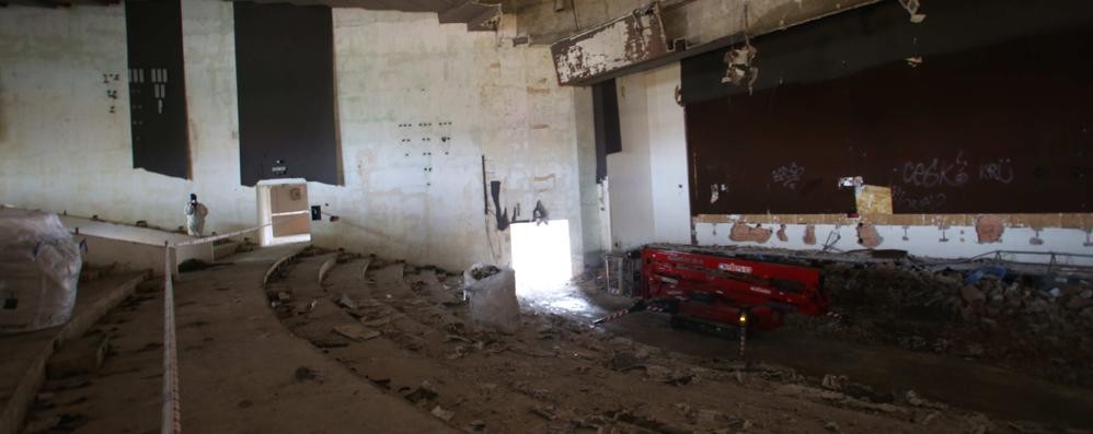 Le storiche poltroncine rosse non ci sono più e quella che è stata la sala cinema con lo schermo più grande d’Italia è oggi solo un’arena di calcinacci, controsoffitti a brandelli, mura che stanno cadendo sotto i colpi delle scavatrici.
