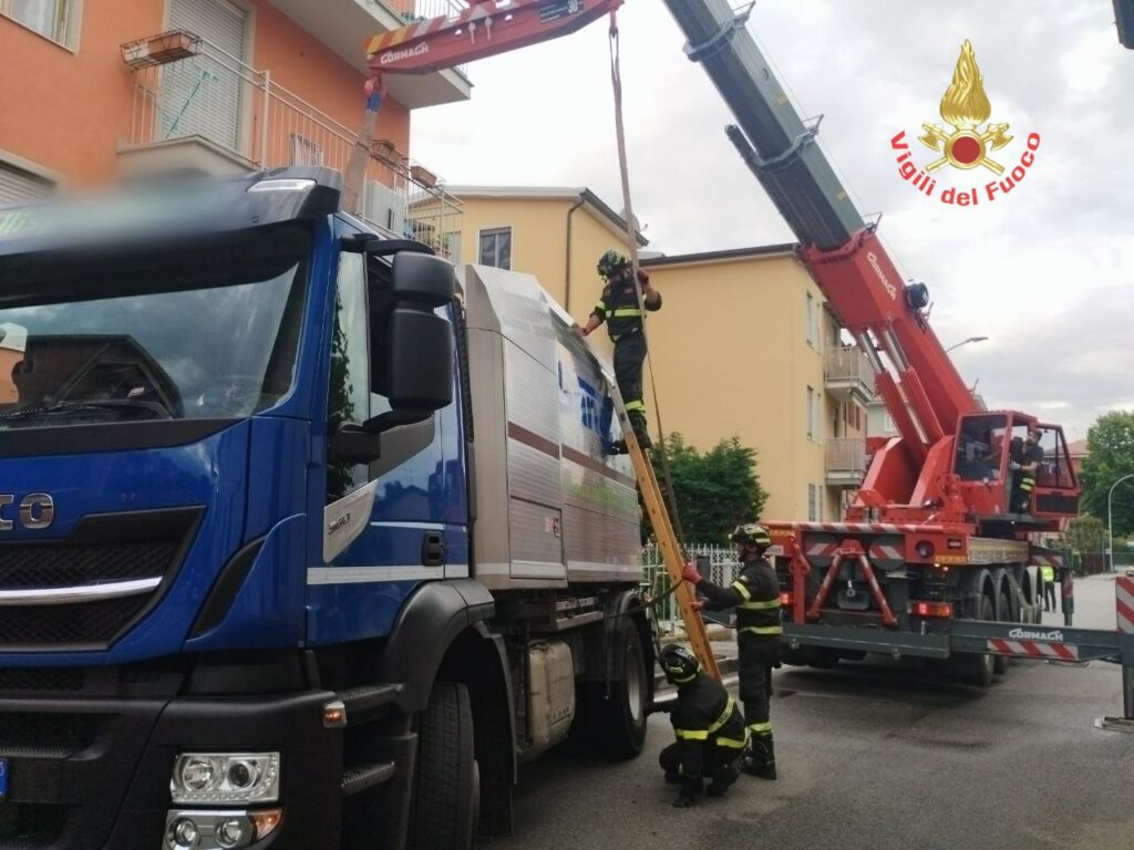 Per il recupero del mezzo, rimasto bloccato, e la messa in sicurezza del marciapiede si è mobilitata una squadra dei vigili del fuoco del Comando di Monza e Brianza con una autopompa dalla sede centrale di Monza e in supporto una seconda dal Comando di Bergamo con una autogrù necessaria per ancorare l’autocarro. Sarà ora necessario l’intervento di tecnici per il ripristino del marciapiede.