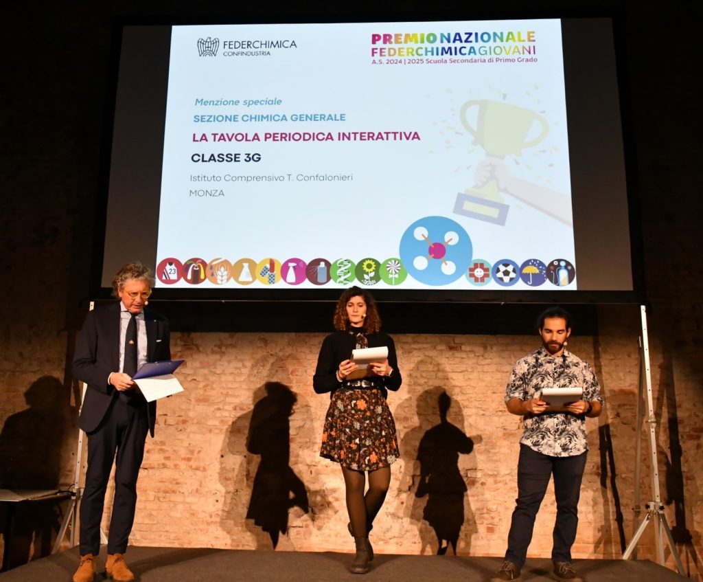 Due scuole di Biassono con ben due classi e il comprensivo Confalonieri di Monza sono stati premiati dalla Federazione nazionale dell’Industria Chimica, insieme alle sue Associazioni di settore nell’edizione 2024-2025 del Premio Nazionale Federchimica Giovani “Chimica: la scienza che salva il mondo” promosso ogni anno per avvicinare le nuove generazioni alla chimica attraverso la didattica innovativa con l’obiettivo di orientare le nuove generazioni alle carriere scientifiche in ambito tecnico, professionale e universitario. Infatti la chimica è stata raccontata dai ragazzi, nei loro progetti, in maniera originale, attraverso canzoni, video, podcast e quiz.
