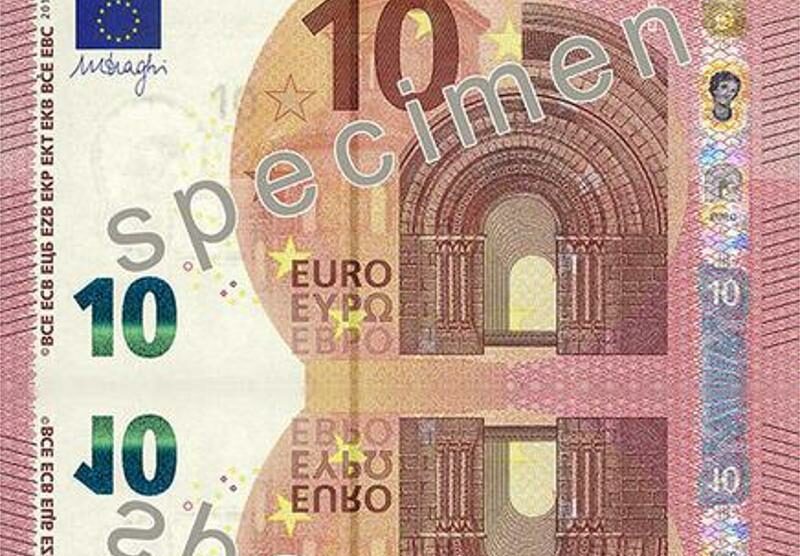 Per non confondere il pubblico, la nuova banconota è somigliante ai vecchi biglietti da 10 euro introdotti nel 2002. C’è il richiamo all’architettura romanica, ma la tonalità del colore vira verso sfumature del marrone, nell’insieme più calde. La principale novità è un ologramma con il ritratto di Europa e una nuova filigrana, oltre a un numero verde smeraldo che quando viene mosso cambia colore passando al blu scuro.