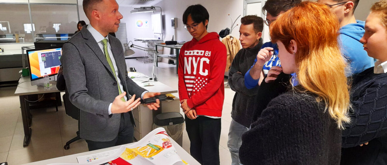 Sono stati accolti dalla presentazione dell’azienda e dalla testimonianza di Matteo Alparone, che dopo una formazione da grafico e alcune esperienze in altri ambiti, si è riavvicinato al mondo della grafica proprio con un corso dell’ITS Angelo Rizzoli: di qui l’occasione di uno stage curriculare di 6 mesi in Digital Flex che poi è sfociato nell’assunzione come Operatore Grafico di pre-stampa.