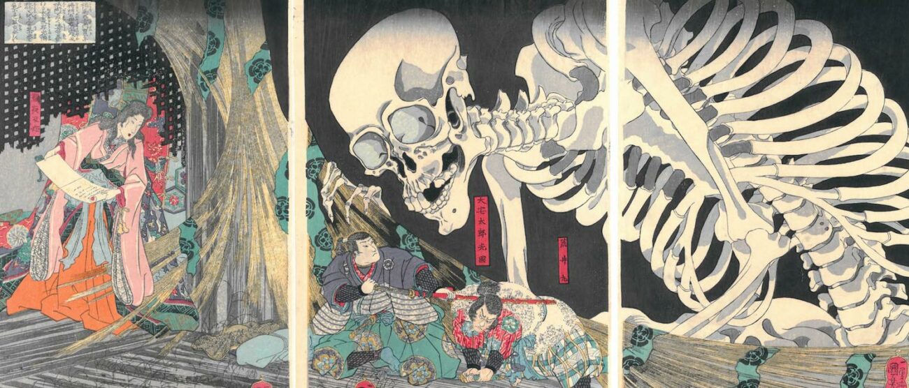 Nelle opere esposte a Monza si parlerà delle Jorogumo, avvenenti donne che rivelano alle vittime la loro reale natura di enormi ragni, oppure dei tassi trasformisti Tanuki e dei Bakeneko, gatti mostruosi. E ancora dei Kappa, esseri acquatici, delle Ningyo, gli Okiku, Kodama e Omujade, Kaiju e Oogumo. Sono i mostri di queste storie che comporranno il percorso in undici sezioni per “un viaggio tra gli spiriti, le creature e i mostri del folklore nipponico: creature a volte grottesche, altre dispettose, spesso e volentieri spaventose, che abitano da sempre l’immaginario collettivo e il quotidiano degli uomini e delle donne giapponesi, tutti ben consapevoli di coesistere e di venire in contatto con questi esseri inquietanti. Yōkai (mostri), Bakemono (mostri mutaforma), Yurei (spettri e ritornanti) popolano le xilografie in mostra, insieme a draghi, orchi, volpi trasformiste, fatali mici mannari, spettri, rospi vampiri”.