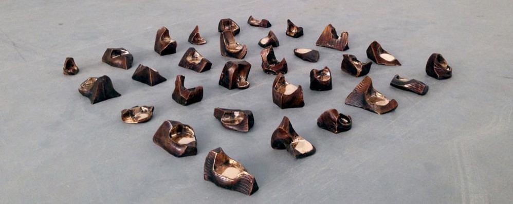 L’argilla nera cotta, oggetti trovati, materiale comune che cambia ambito semantico, sono altrettante premesse di scelte formali e allo stesso tempo concettuali. «Il percorso espositivo si snoda attraverso le relazioni – e gli eventuali corto-circuiti – generati dal dialogo tra i diversi linguaggi espressivi della scultura; l’astrazione, la memoria, l’organico e l’artificiale convivono in un universo in continuo divenire», scrive ancora la gallerista che ha scelto di aprire l’anno con le opere di Lorenza Boisi, Daniele Carpi, Claudio Corfone, Eracle Dartizio (il più locale degli autori, nato a Vaprio, già vincitore del Premio Laguna e del premio Arte Mondadori: nella foto le sue Pozzanghere), Francesca Ferreri, Andrea Magaraggia, Mario Scudeletti ed Eugenia Vanni.