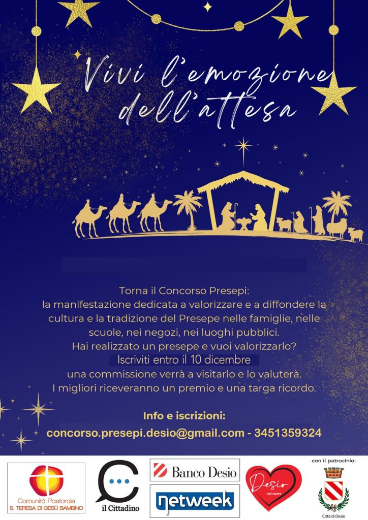 Anno dopo anno, il Concorso Presepi in Famiglia è entrato nel cuore di Desio. La manifestazione, organizzata dalla Comunità Pastorale con il Patrocinio del Comune e il sostegno del Banco di Desio, ha lo scopo di diffondere la cultura e la tradizione antica del presepe, che risale alla figura universale di San Francesco d’Assisi. Fa incontrare i desiani – in particolare quelli più giovani – di fronte allo stupore della Natività. Potranno aderire famiglie, scuole, parrocchie, chiese, oratori, negozi, e in generale tutti. Chi desidera potrà iscriversi, presentando al concorso il proprio presepe.