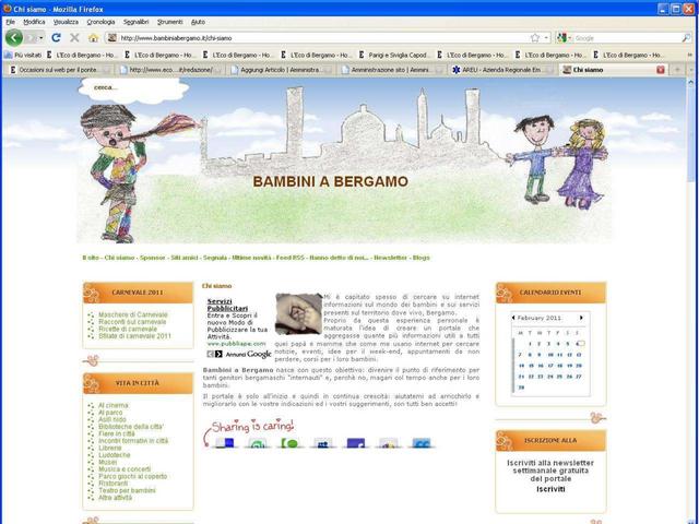 Il portale è nato nell’estate del 2009. A molti è mai capitato di navigare su internet alla ricerca di qualche spunto su come trascorrere il week-end con i propri bambini o di venire a conoscenza di un evento interessante troppo tardi, e di non potervi più partecipare. Bambini a Bergamo si pone diunque l’obiettivo di diventare un aggregatore di notizie.