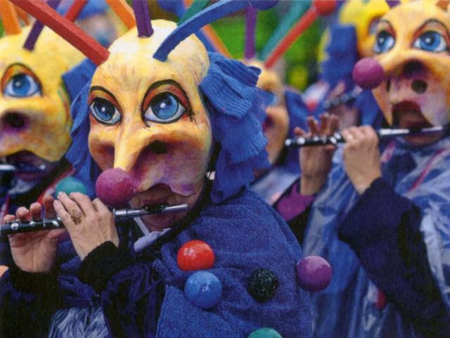 Tutte le luci vengono spente e, più di 200 motivi carnevaleschi dipinti sulle lanterne, (anche da artisti famosi ) brillano nell’oscurità. E’ un magico momento. L’inizio della grande marcia, il tutto accompagnato da gruppi, bande musicali e tamburini. Dopo questo pittoresco inizio, ci si incontra nei ristoranti dove tradizionalmente vengono servite zuppe a base di farine, cipolle e torte di formaggio.