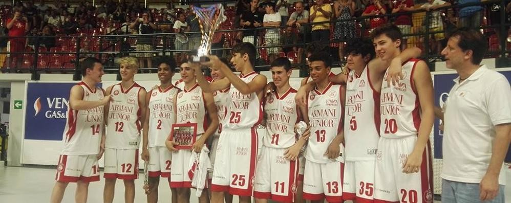 È l’Armani Jr Olimpia Milano la squadra vincitrice della Coppa Alberto Giove numero 30, la manifestazione internazionale di basket giovanile andata in scena a Monza in una quattro giorni ad alto tasso di spettacolo. Domenica i milanesi biancorossi hanno battuto in finale l’Aba Legnano per 83-58, il secondo trofeo sollevato solo due giorni dopo quello per lo scudetto della serie A.