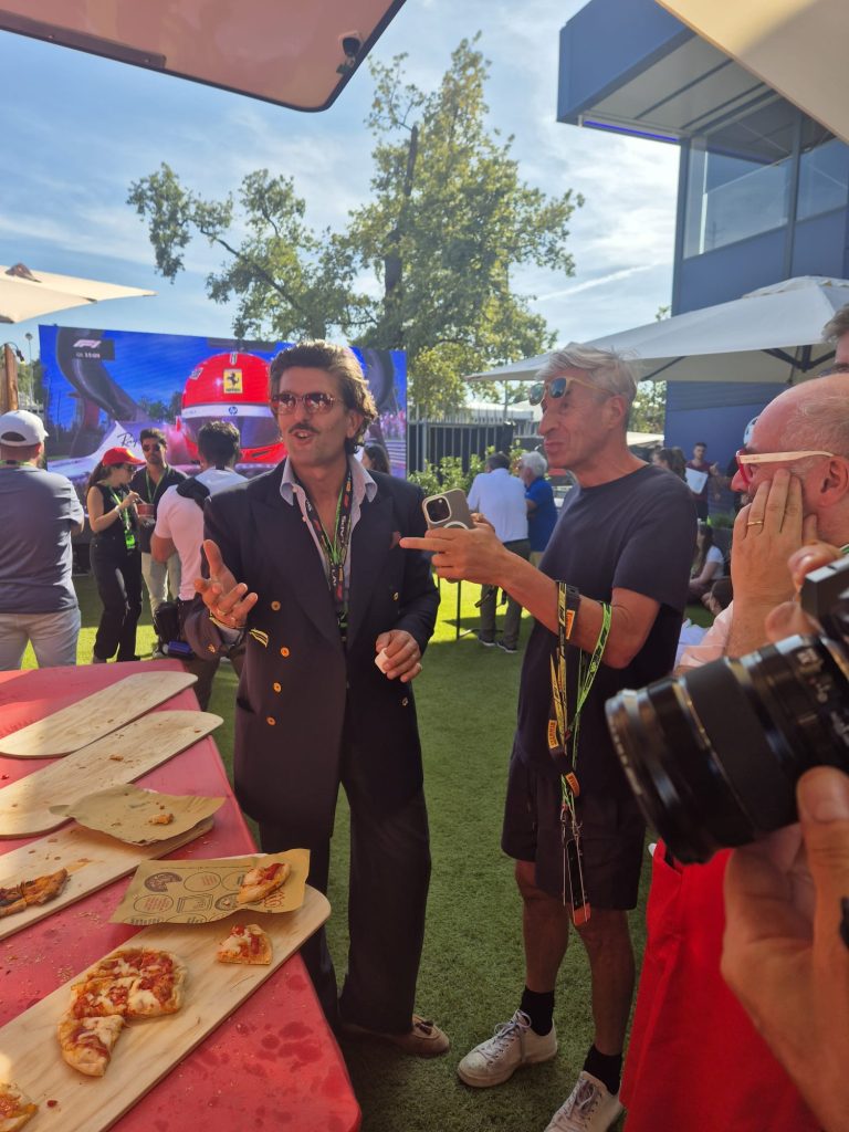 Ore 16.26: anche l’artista Maurizio Cattelan in visita al ristorante di PizzAut all’autodromo di Monza.